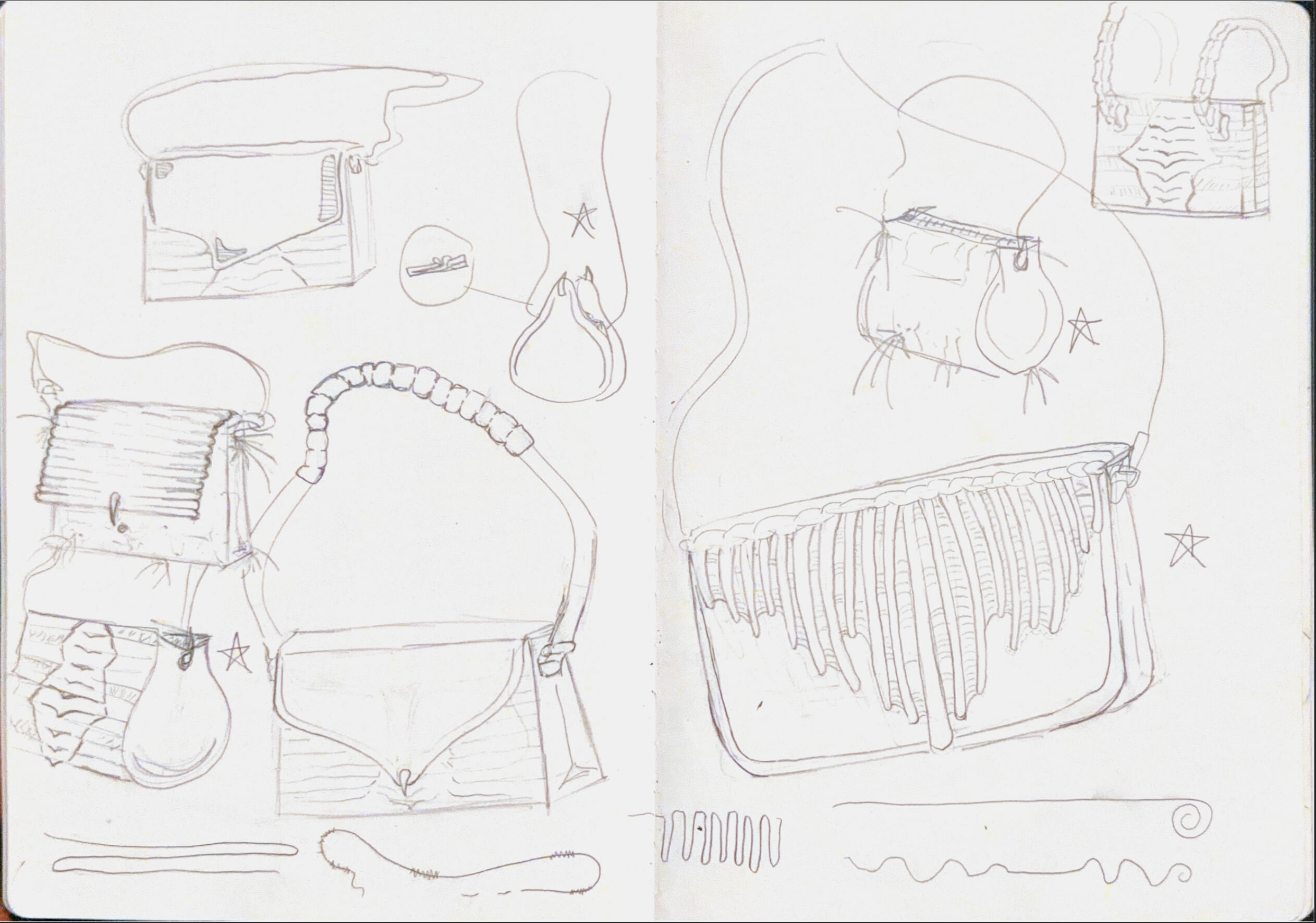 **All displays are intended to present design ideations and developmental processes, but all bags, belts, and corsets presented can be made on request.Message Jacob Dávila directly with your desired product listed for more information and commission policy.